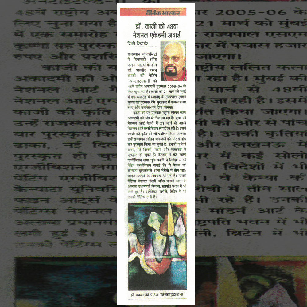 - “Rekhankan- Shabbir Hasan Quazi” KA (Kala Sampada) Evam Vaichariki) a Biomonthly Art Magazine, July August 2003, pp. 17-20.